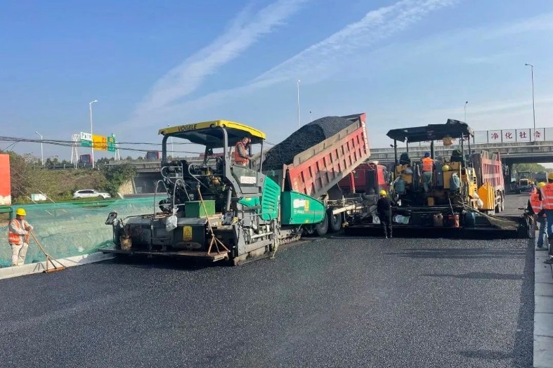 11月6日,南京龍袍項目部楊莊河路K0+400-K1+200東半幅機動車道第一層瀝青攤鋪順利施工完成。...