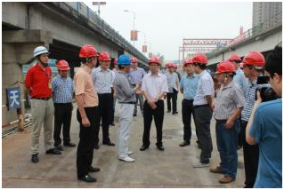 5月20日,溫州市副市長陳建明一行蒞臨公司溫州龍港大橋改建工程項目部檢查工作,溫州市交通局副局長蔣理江、蒼南縣常務副縣長黃錦耀、縣交通局局長黃文友,公司黨委書記陳建鳴陪同檢查。